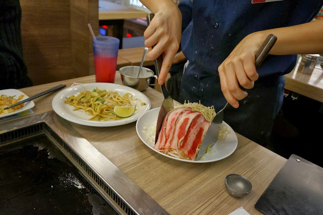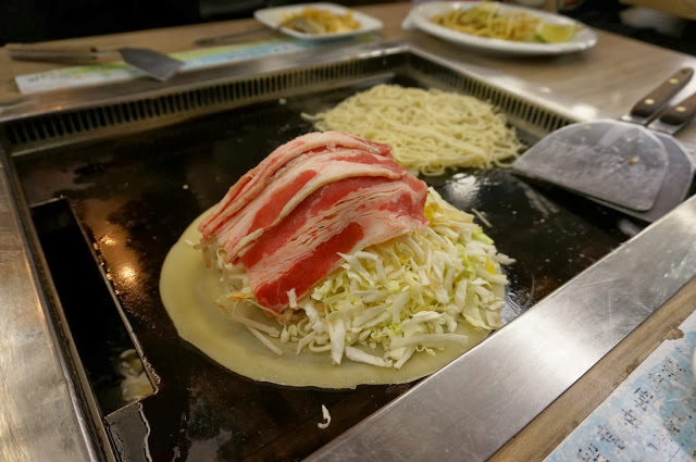 很早以前從日本的電視節目與日劇上,就有看到這樣道地的日本料理,所以也很想來嚐試看看在鐵板上滋滋作響的美味食材的效果與感受,不過一直以來都沒有看到相當道地的鐵板店家,後來也在一般的夜市小攤販上品嚐過但只有在小販的鐵板上料理好再切割分裝跟電視上看來的都不一樣 >< ,而後陸續有認識日本友人也透過日本友人的親自下廚料理廣島燒與文字燒的料理,也難得的品嚐了一回來自日本的料理,但卻也是在自家的平底鍋料理上的家庭感受,而不是大鐵板上的豪邁料理呀。