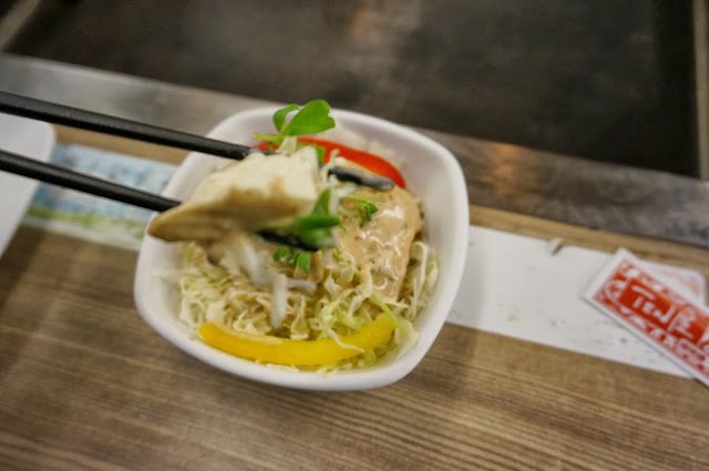 ▲實際入口份量也相當的適宜,軟嫩的豆腐配上芝麻醬攪拌上生菜與青椒兒們,乾乾淨淨開胃的感覺就此化開了~