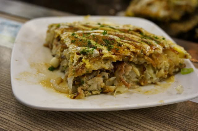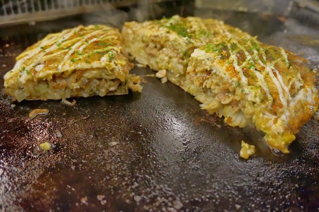 一口咬下,熱騰騰的滋味、豪氣的吃法,這就是超讚的日式廣島燒呀!!真的有滿足到了!!