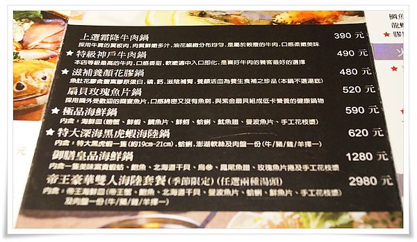 另外..如果基本的牛羊豬雞跟海鮮不能滿足你..有這種食材升等選擇!! 最貴2980元