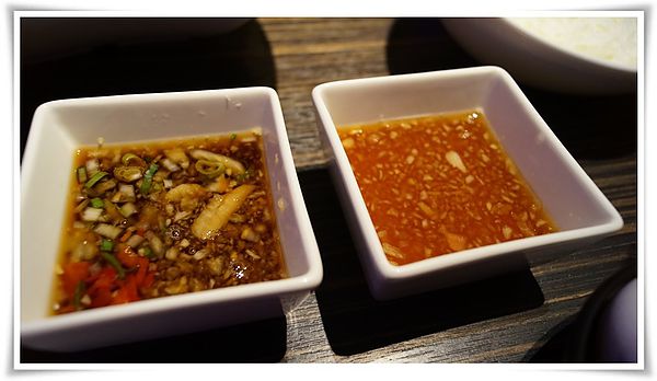 菜盤...開始上桌囉~ 沾醬:左邊 是店家特調的火鍋沾醬~說是火鍋醬~不如說和風醬~
