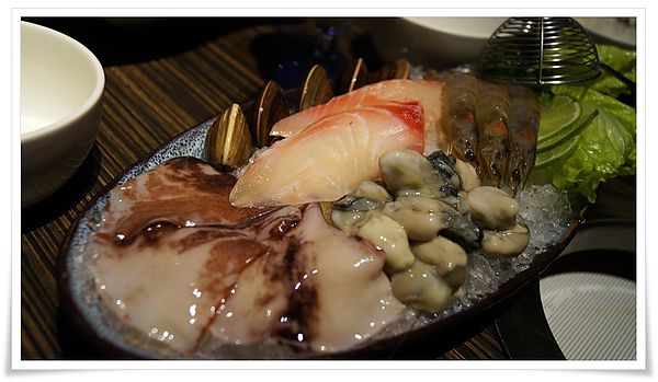 一人份的海鮮拼盤~ 喜歡吃魚的我吃魚肉~其他都跟大貓先生分享XD ( 我是貼心好人妻!)
