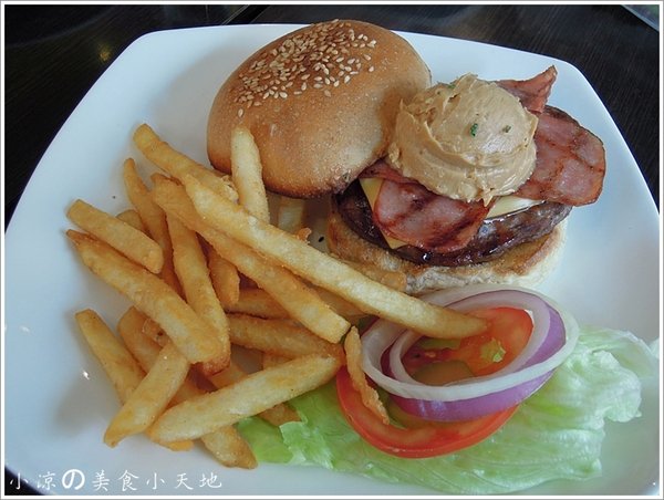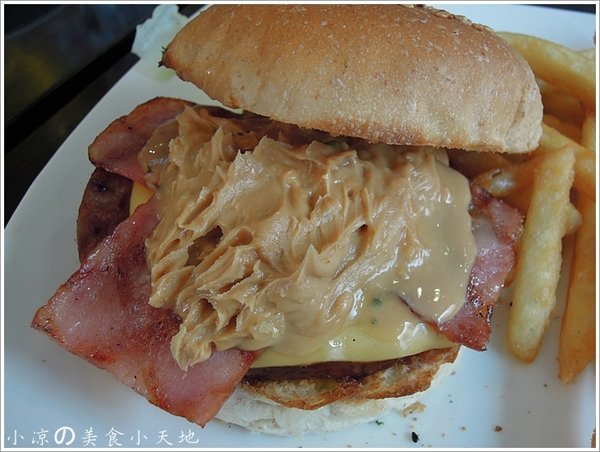 花生醬燒烤堡(單層)195元附薯條.生菜.(可樂.雪碧.芬達.檸檬茶無限暢飲)