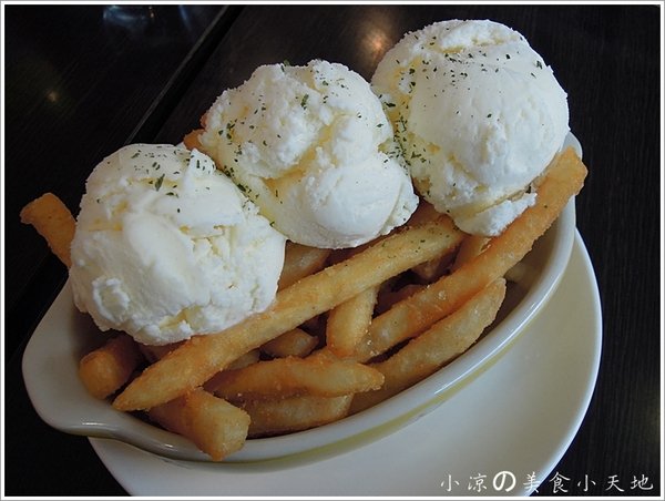 拿起酥脆的薯條沾上細膩滑口的冰淇淋,口感很特別