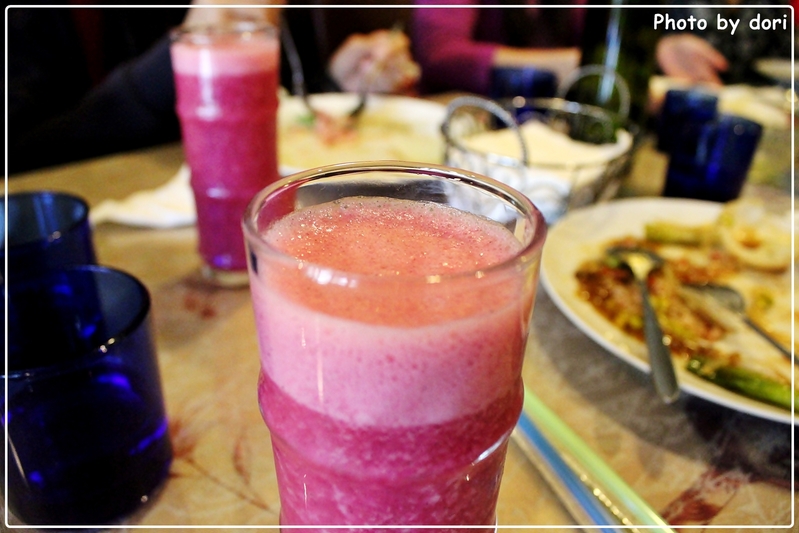 水果MIX特調,在喝的時候還能猜猜看裡面有幾種水果,印象中有蘋果、甜菜根、鳳梨、奇異果,應該約有5~6種水果在其中。