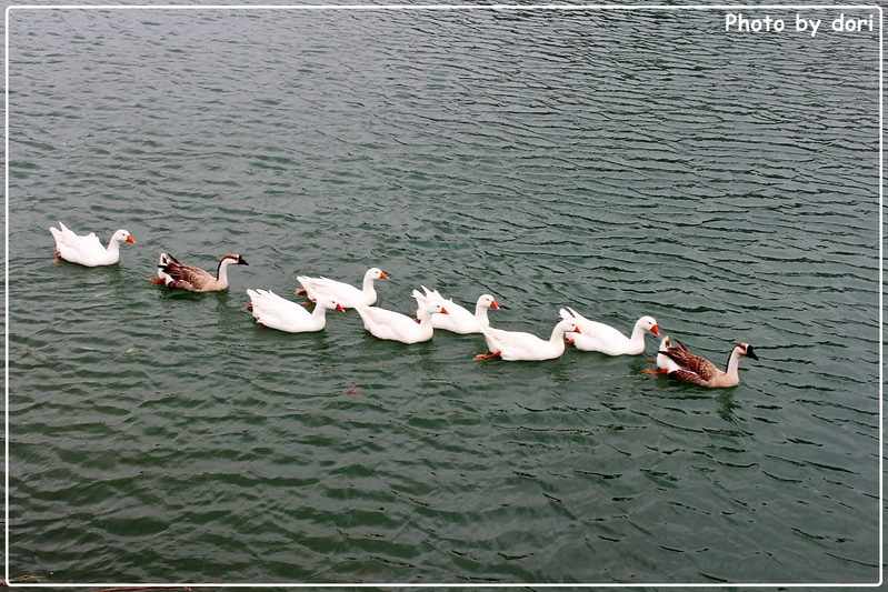 看看這群鴨子隊伍,嚴然不輸給典禮上表演的士兵們,不僅團結,連滑水的步伐都很一致。