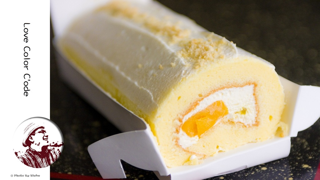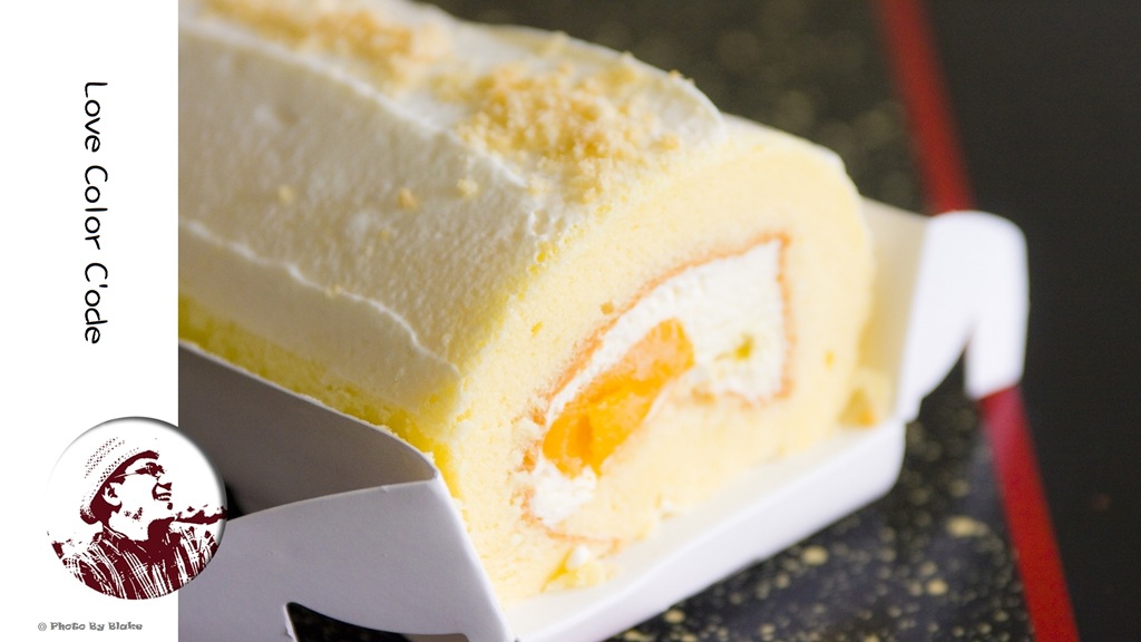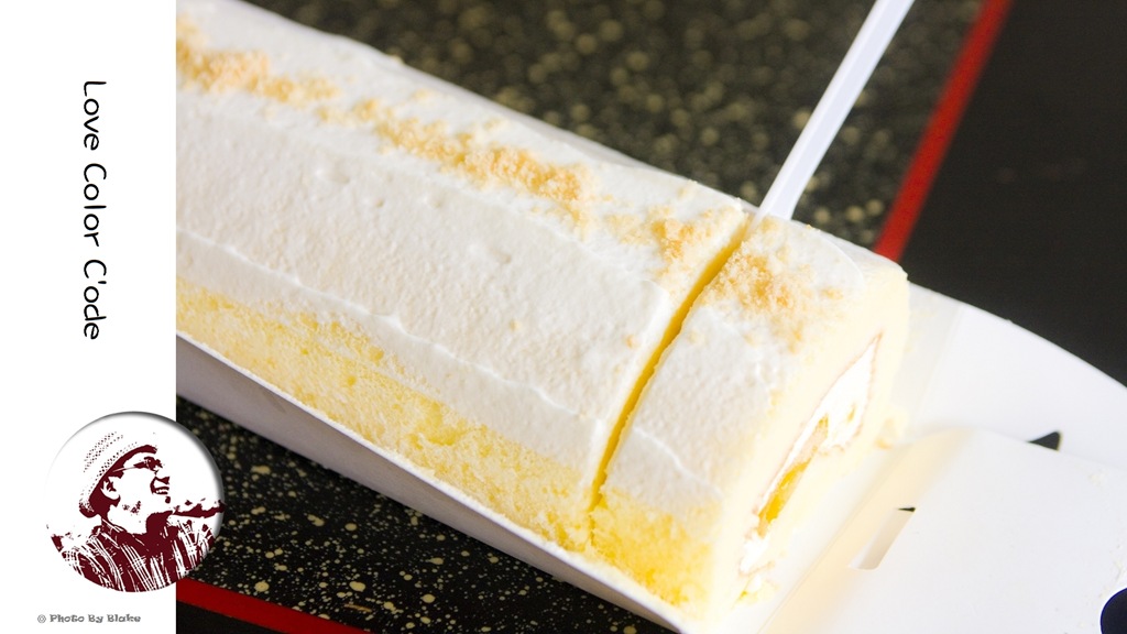 盒子一打開是一條芒果卡士達捲與一紙紙袋,只是布雷克愛抱怨的心態又出來了,希望下次Color C’ode宅配的時候,即使箱子不夠滿,還是塞一點東西,避免蛋糕變形,雖然是剛成立的網路蛋糕店,還是希望未來能夠更好。