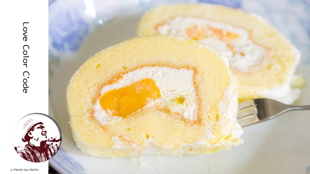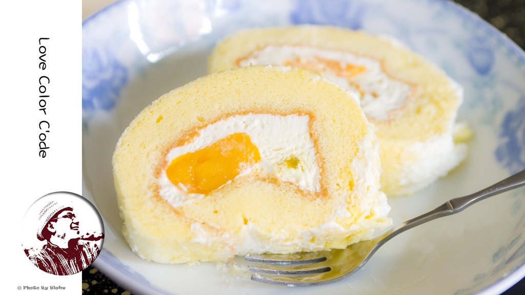 每一口都有一種甜蜜感,一種微微的感覺,一塊吃完之後,完完全全沒有膩的感覺,外面一些用奶油當內餡的蛋糕捲,吃多了總覺得會膩,芒果卡士達捲的卡士達醬有充份的拌勻後,反而更清爽。但是要注一下,因為戚風蛋糕跟卡士達醬的黏著性較小,可能叉子一下去之後,可能就分屍。