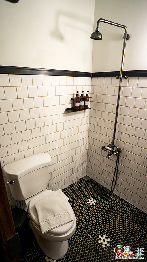 淋浴與廁所在同一邊,前方則是洗手台。