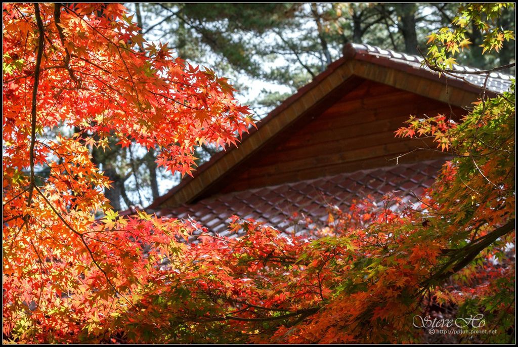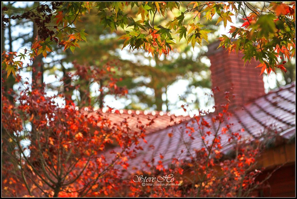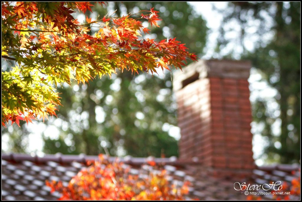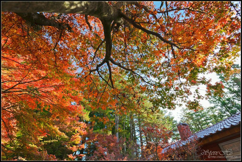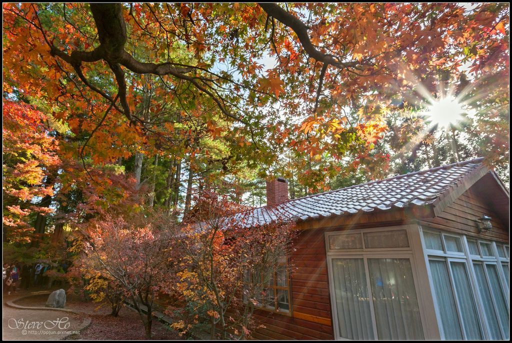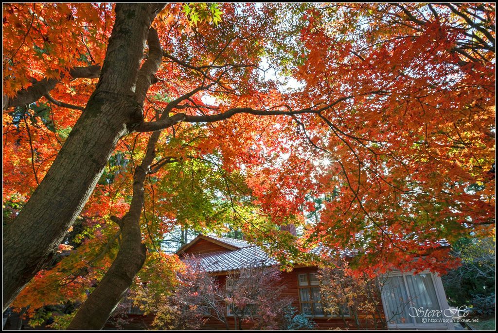 ▼ 以楓為前景,搭配松廬的日式建築,屋瓦、煙囪,組合出一片如夢幻般的詩中場景,彷彿來到日本賞楓