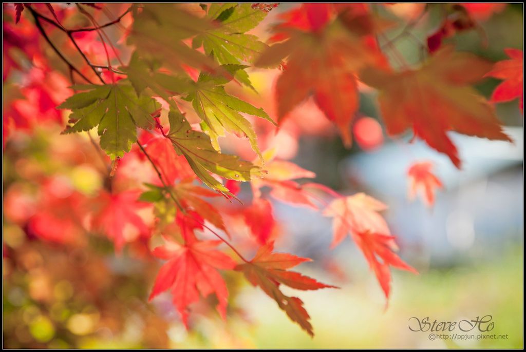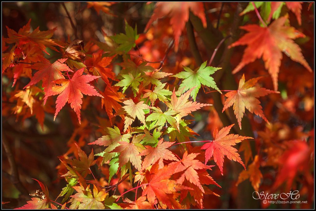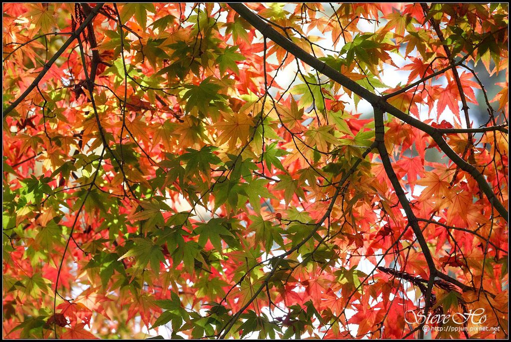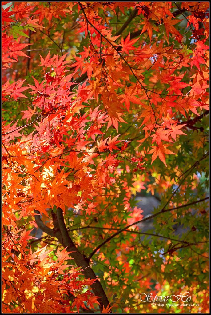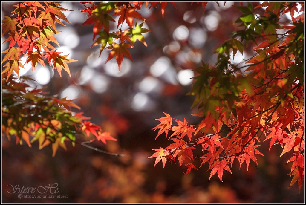 ▼ 一抹斜陽,自葉隙流瀉而下,閃爍的星芒和楓葉層次變化的豐富色彩相輔相乘,更顯光耀奪目