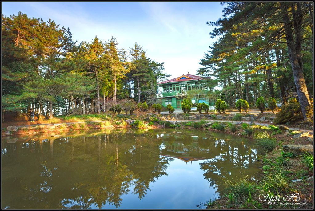 ▼ 當第一抹日光傾瀉灑落在松樹樹梢及池畔,雯那間原本沈靜的天池似乎被付予生命般,充滿了靈氣,配著池中的倒影,令人心醉