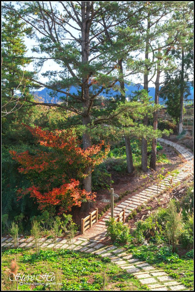 ▼ 製茶廠裡面的小山坡上有一排楓樹,這裡的楓樹不高,可以近距離欣賞楓葉,或鑽進小楓林裡盡情取景拍照。