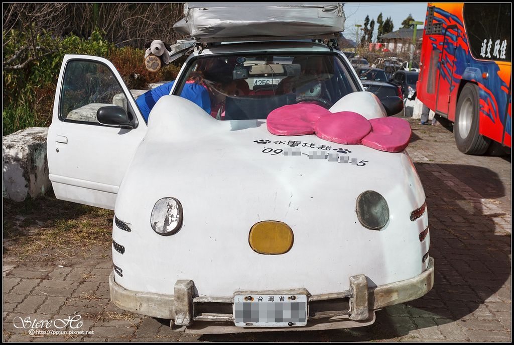 ▼ 差不多到了該啟程回家的時候了,往停車場的路上,看到這輛偽Hello Kitty車,她居然是水電工自己改裝的,引擎蓋上還留有電話,超特別的!