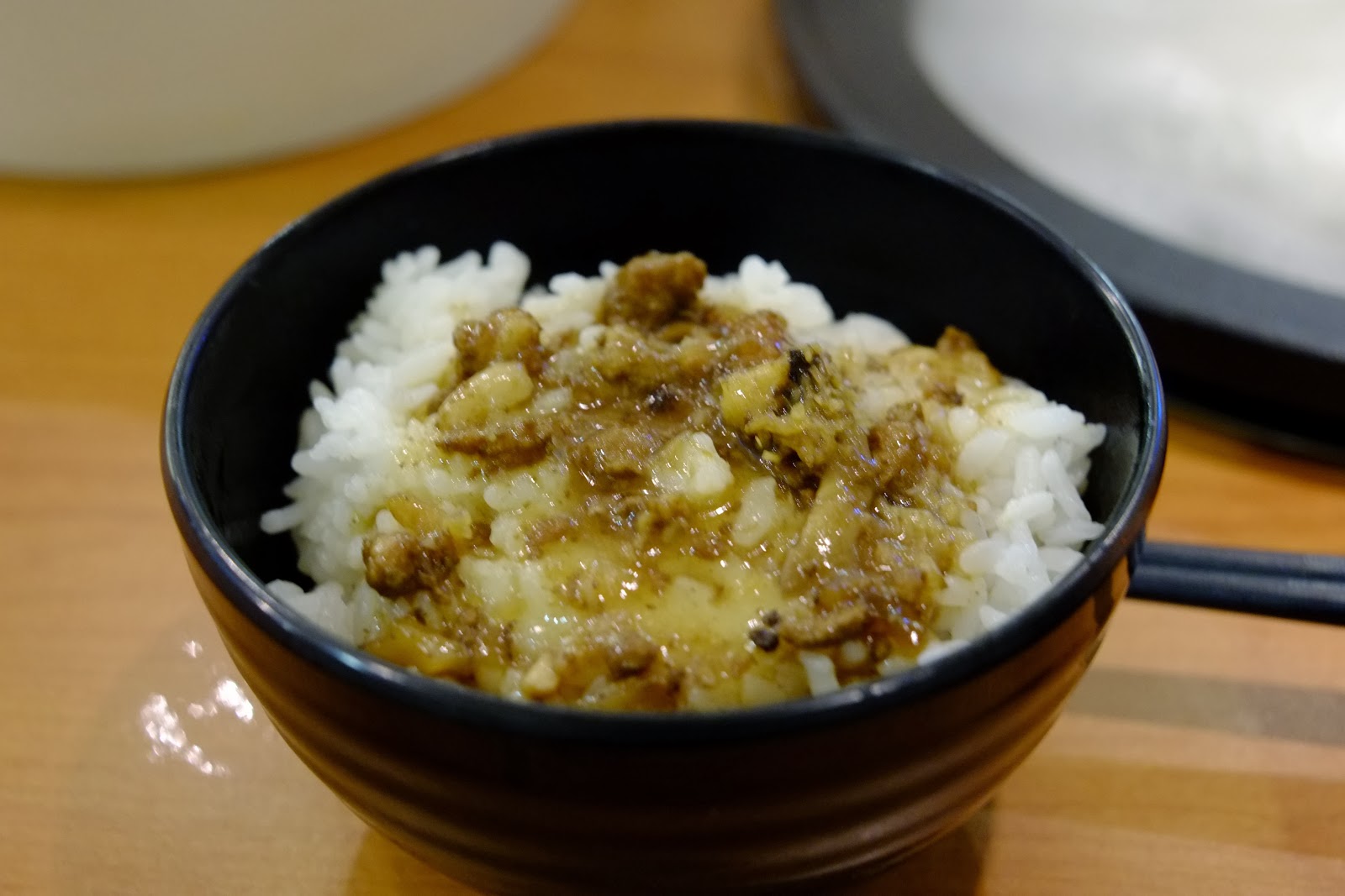 肉燥飯,本來以為會有很多醬汁,但是只有上面一層油,香氣大於味道,蠻開胃的,還是要配著料吃比較實在,飯還OK。