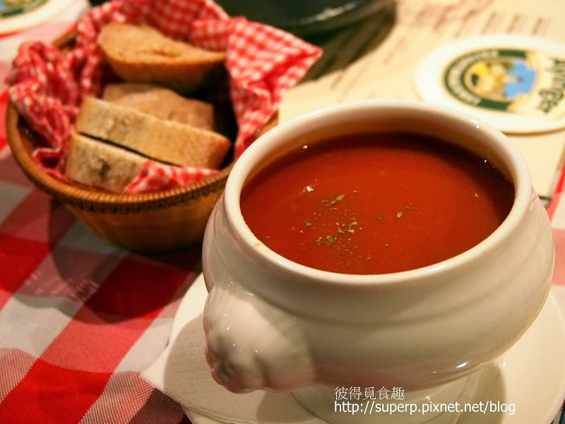 匈牙利牛肉湯$90(酸中帶些微甜,還不錯。不過番茄酸味頗重的,配麵包比較好吃。我們點了兩碗來分)