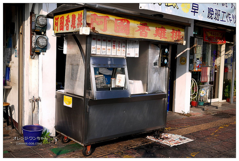 掛了一小塊帆布大概要視力5.0的超遠視視力才看得到的小小字[阿國香雞排]..哈哈..