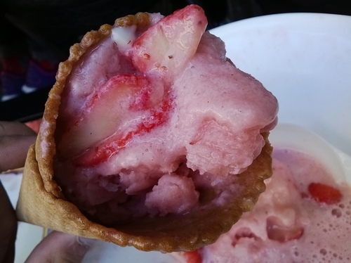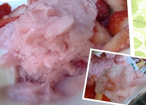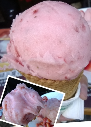 打卡後又加了一支草莓雪酪甜筒!升級成「草莓鮮奶酪甜筒雪酪雪花冰」了(什麼鬼@_@)