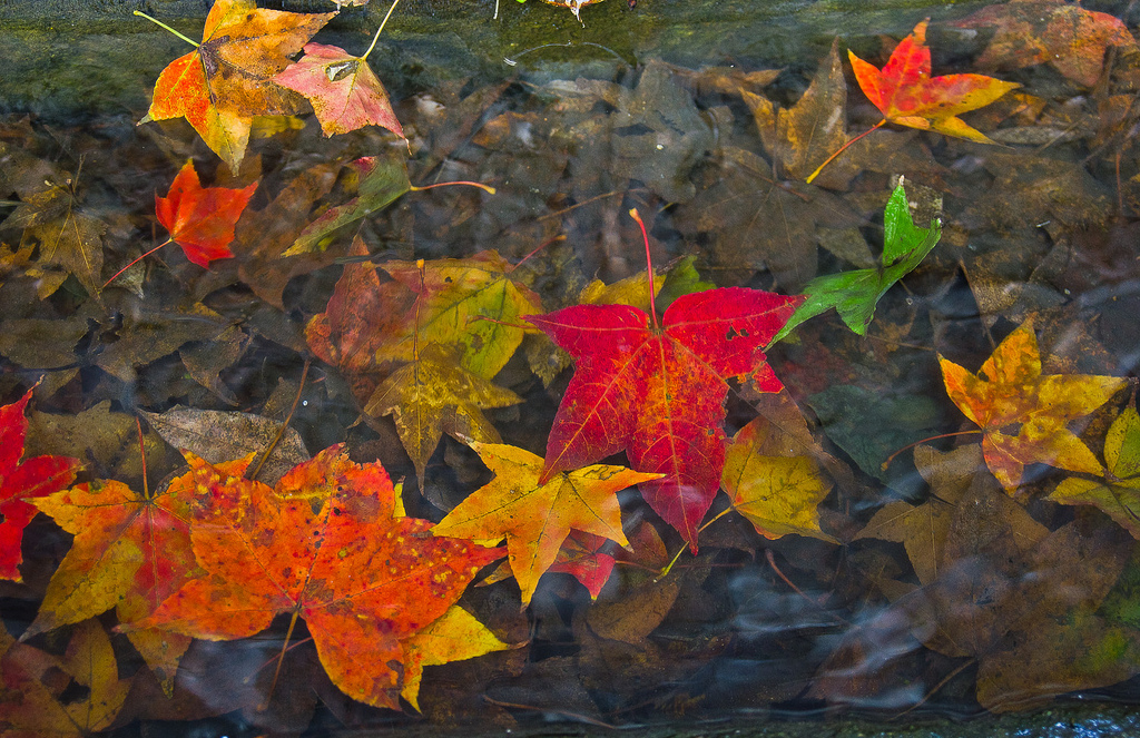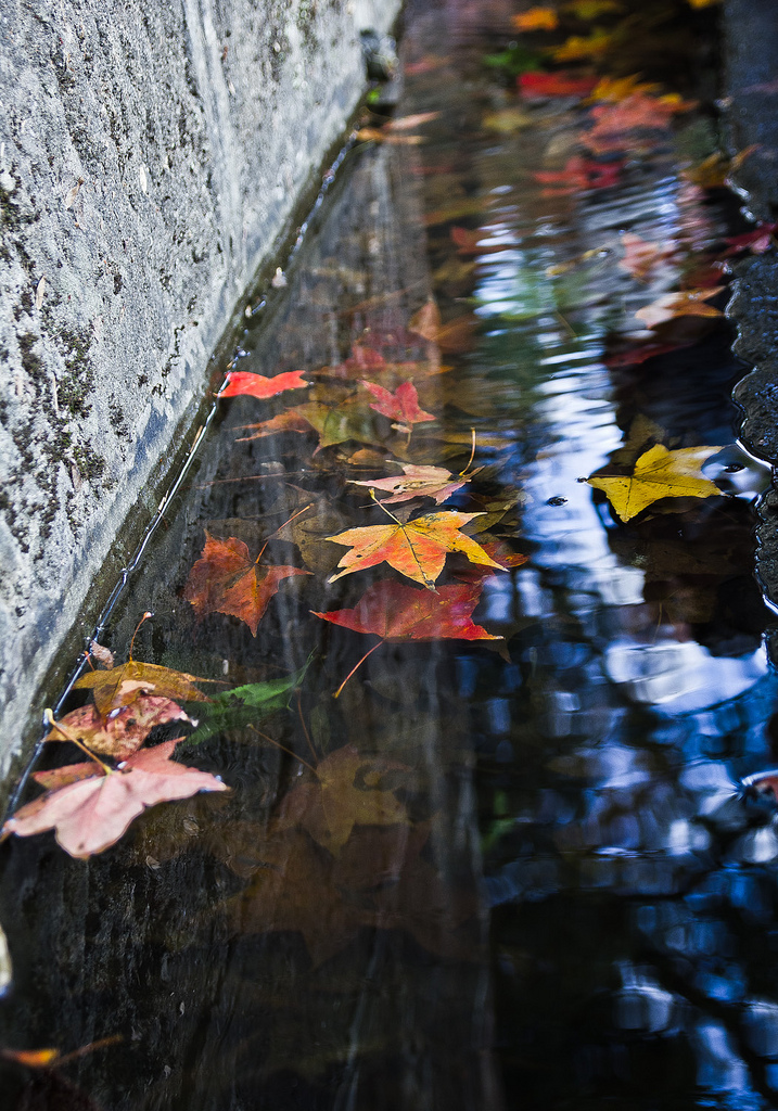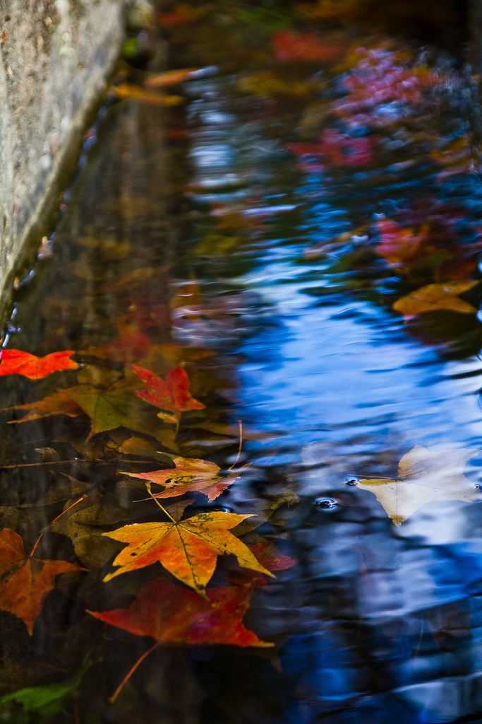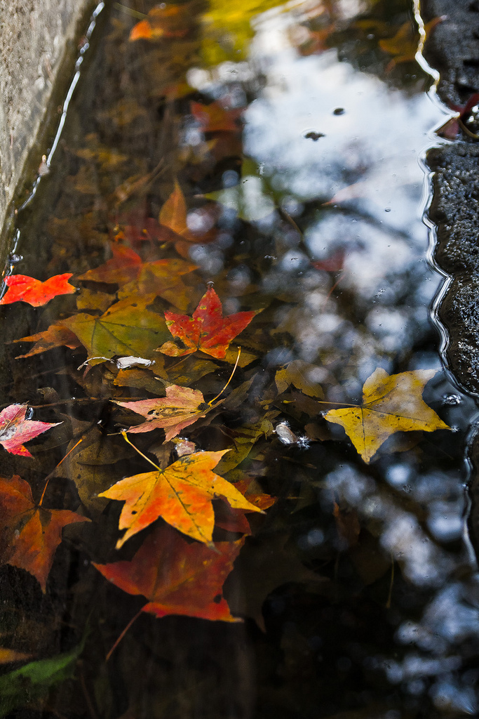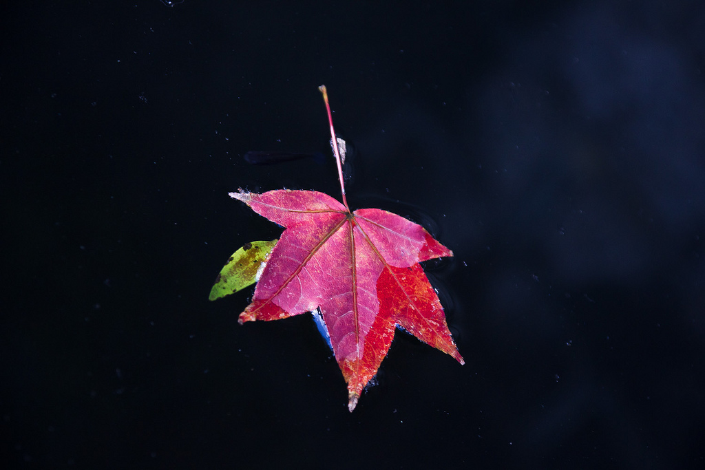 回程的路上,楓葉於水面上載浮載沉的感覺,又帶有另種美感