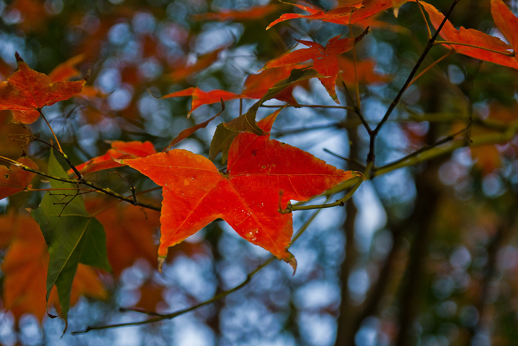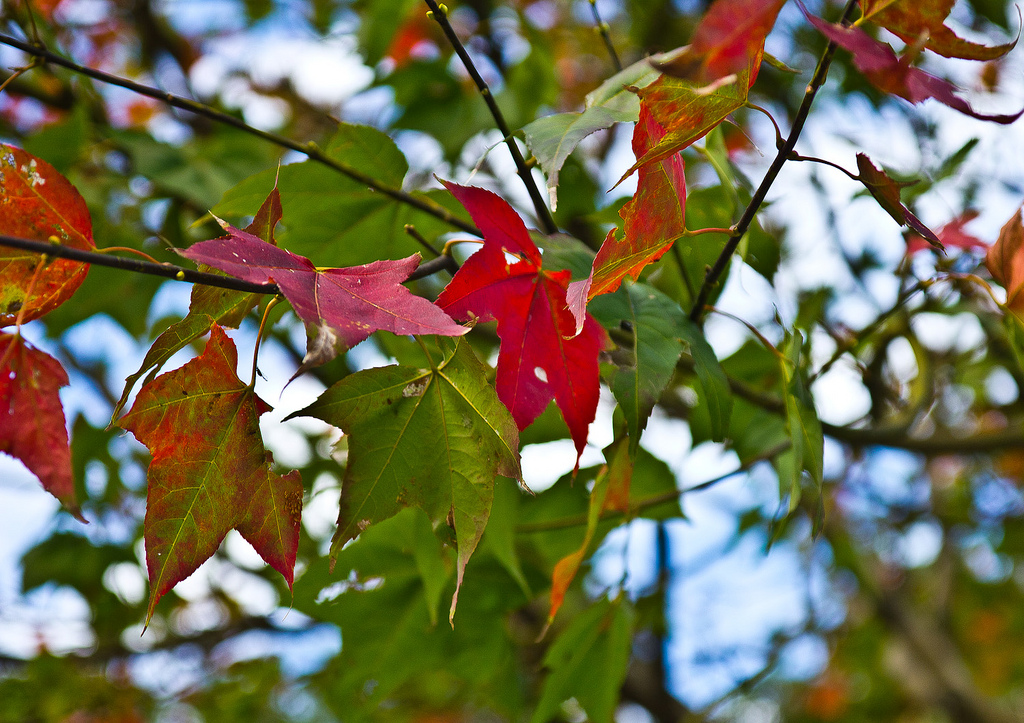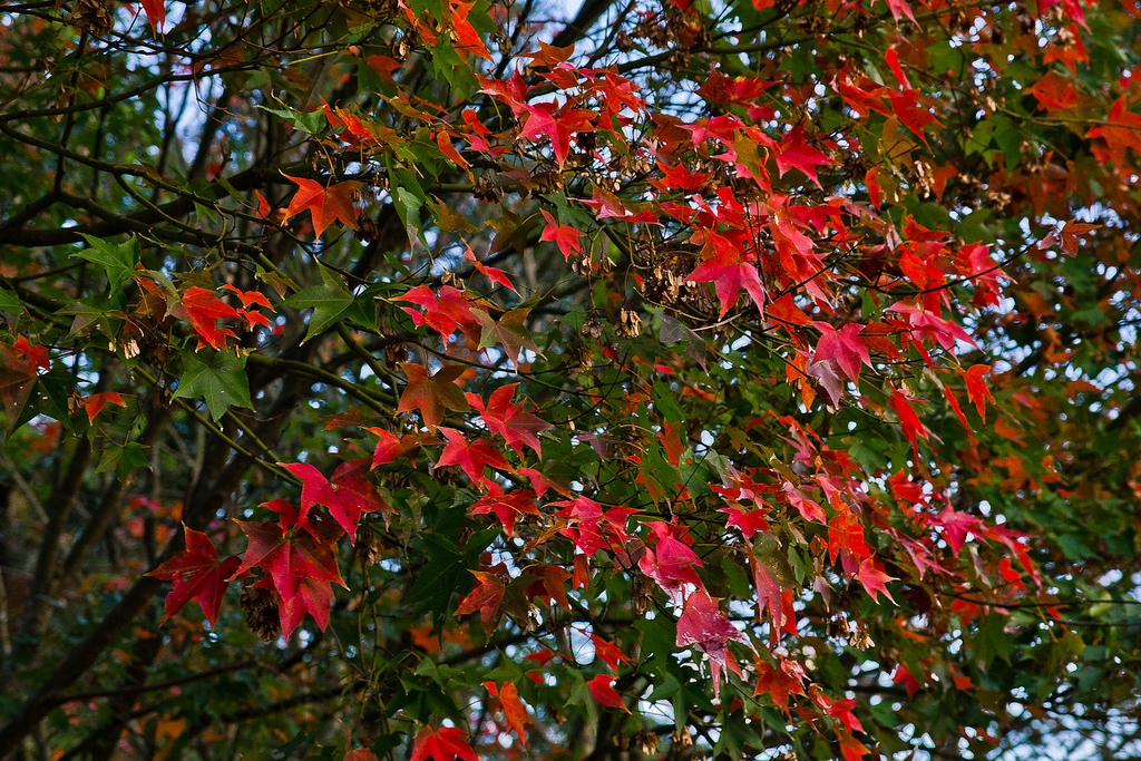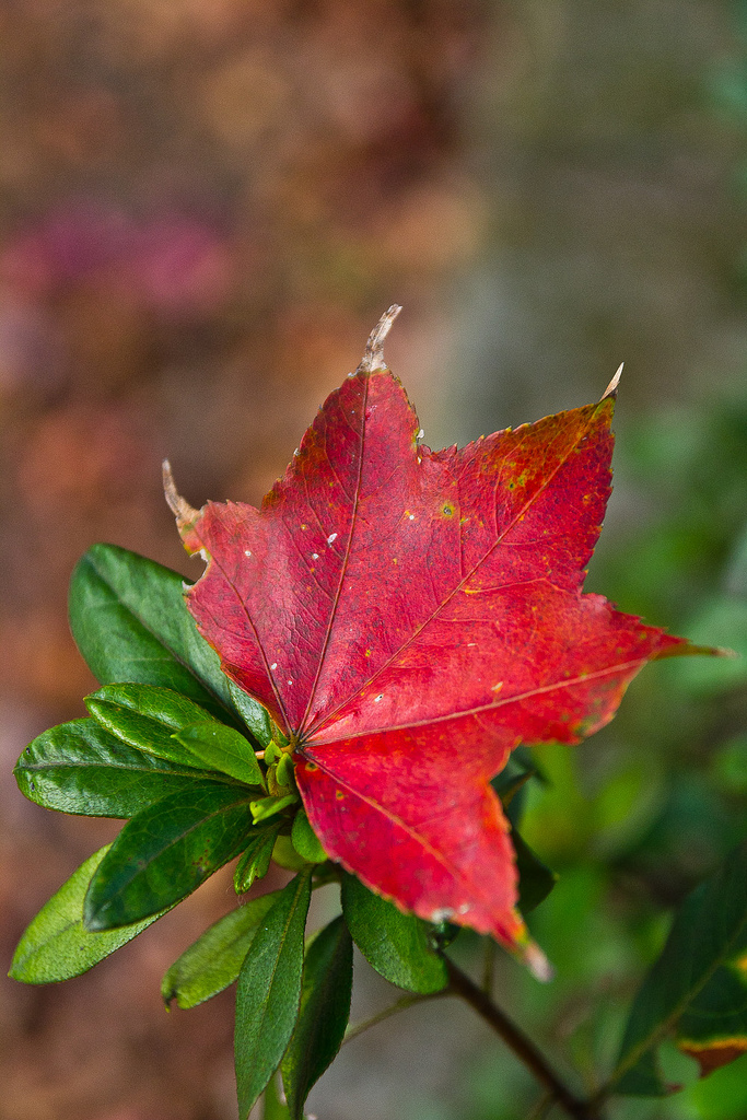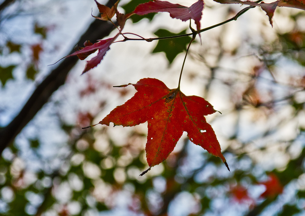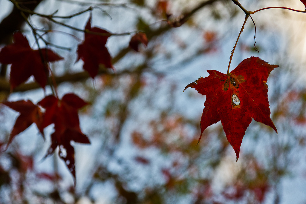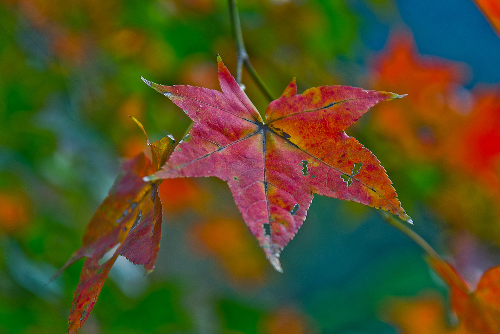 來張楓紅的特寫,雖葉子有些殘缺,但也是頗美的