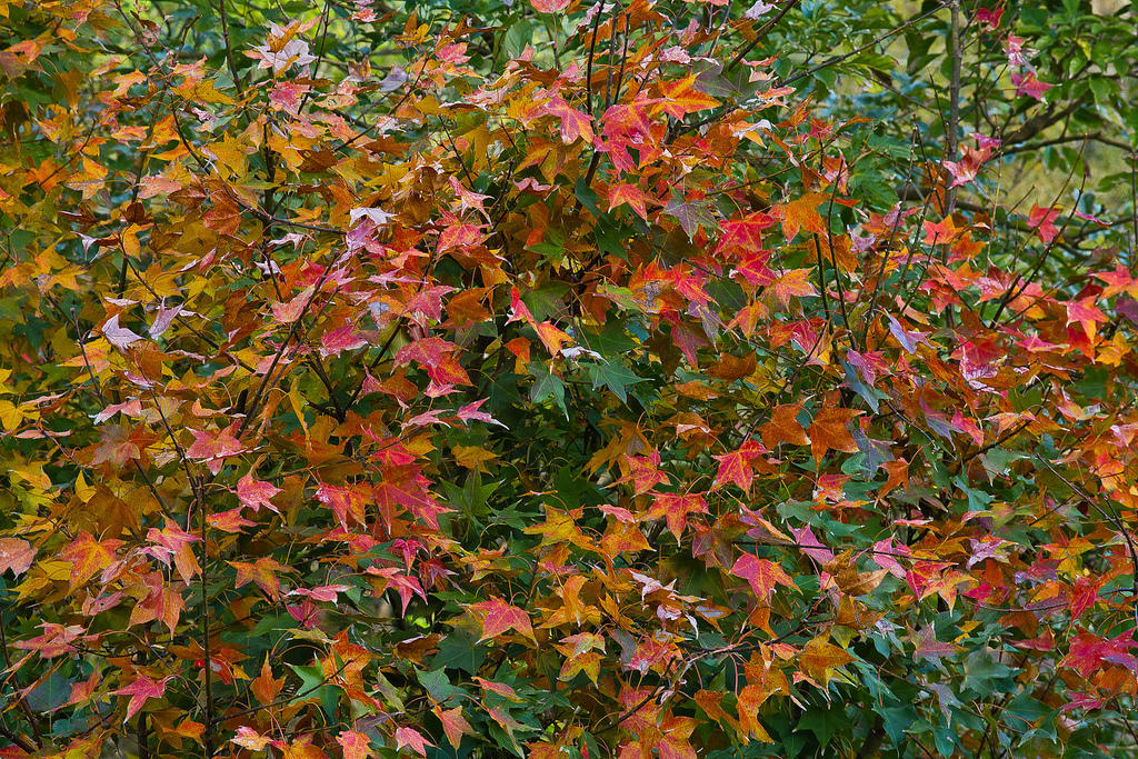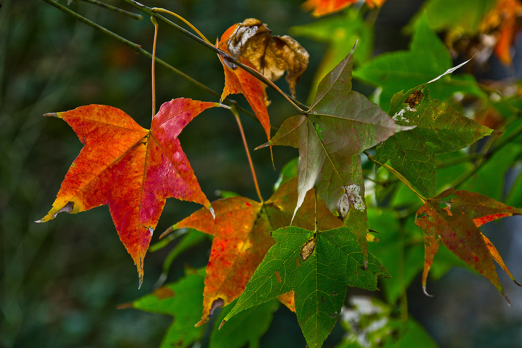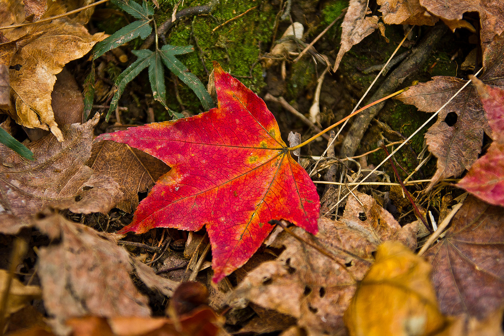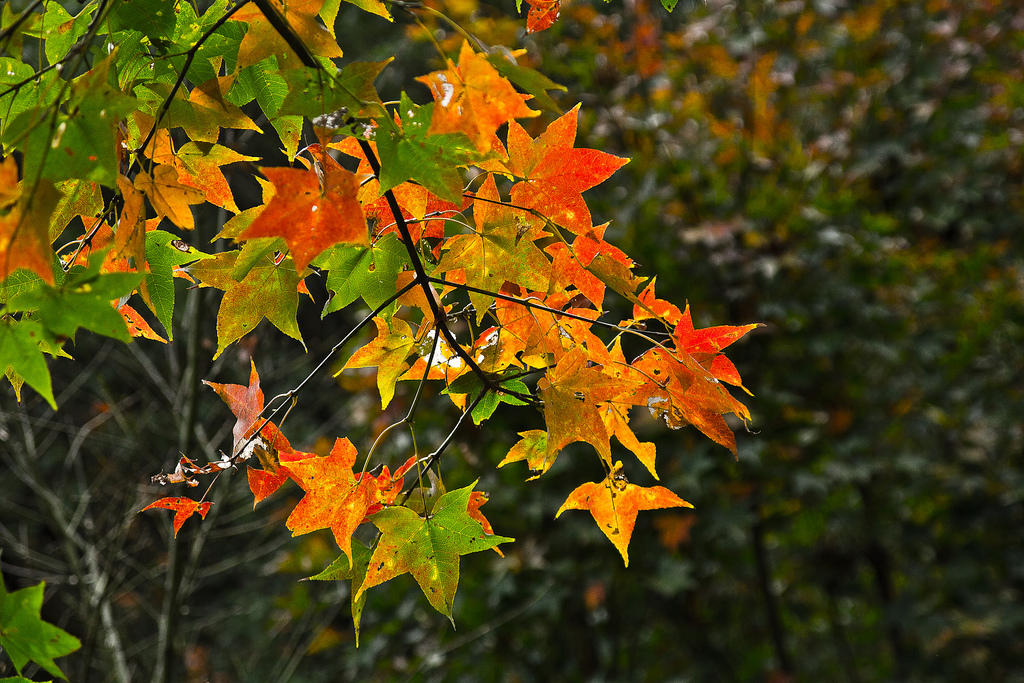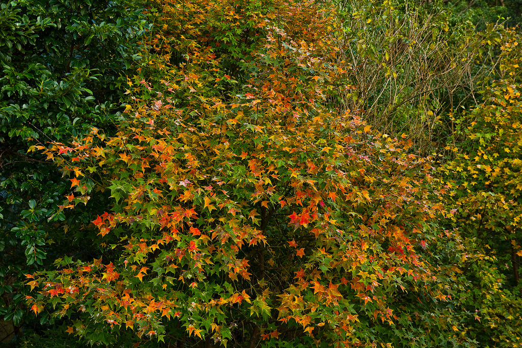 楓葉由綠轉黃、變金黃、變紅,一眼望去滿山遍野繽紛的色彩