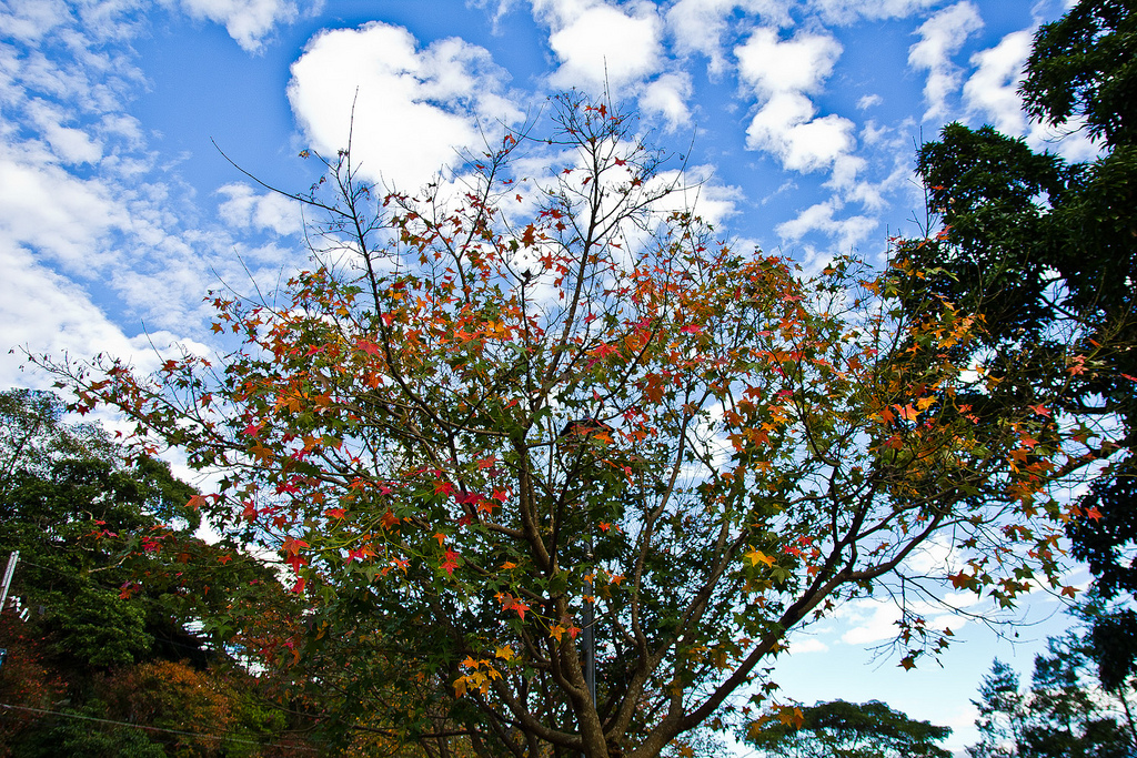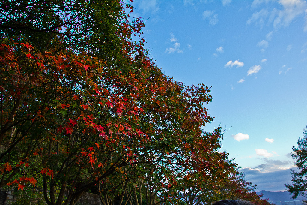 楓葉1/2構圖法,可以更突顯楓葉於樹梢上的美感