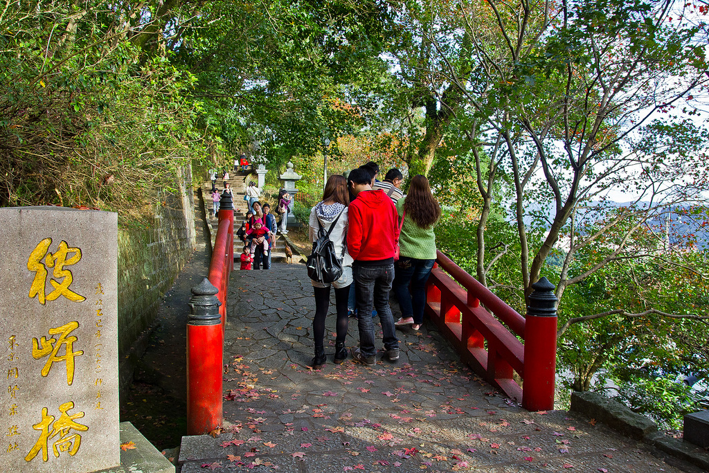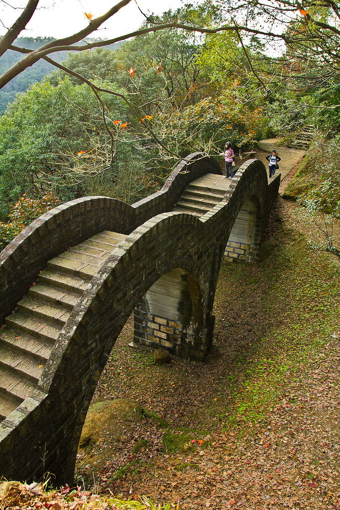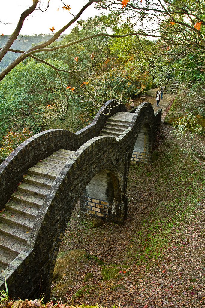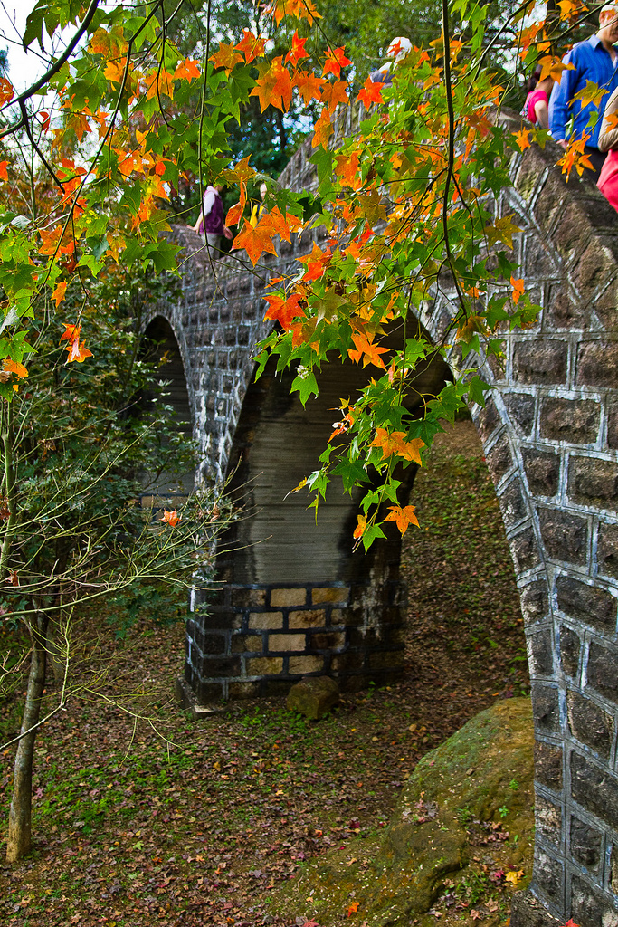 由於楓況未達最佳,拱橋周圍皆是綠油油的一大片