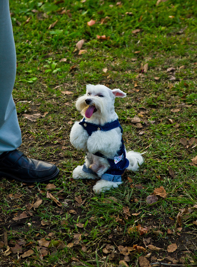 遊客帶來可愛的狗狗,聆聽著主人的口令做動作
