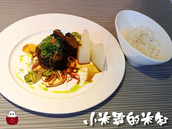 主餐有搭配麵包或米飯,服務員推薦此主菜味道濃厚香鹹,搭配白飯比較好吃