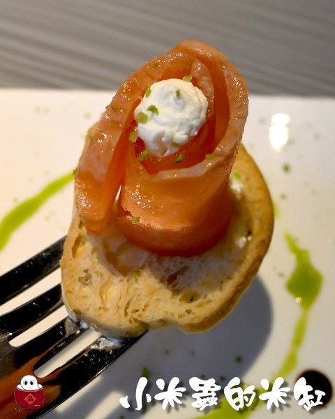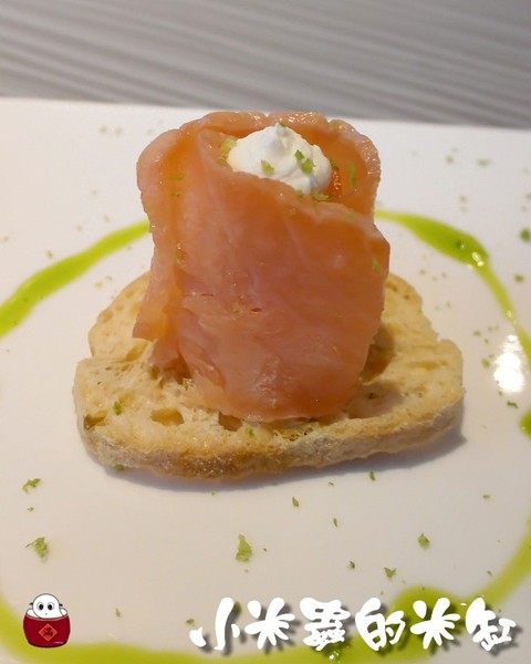 燻鮭魚非常的冰涼,搭著微酸的乳酪