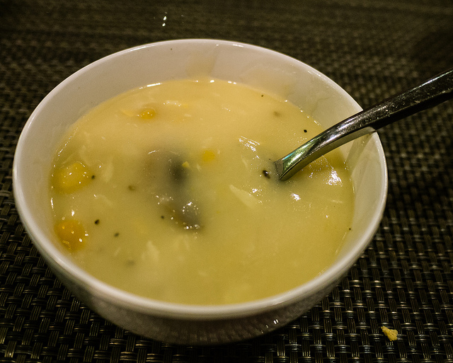 吃牛排沒玉米湯怪怪的,所以弄了碗來喝