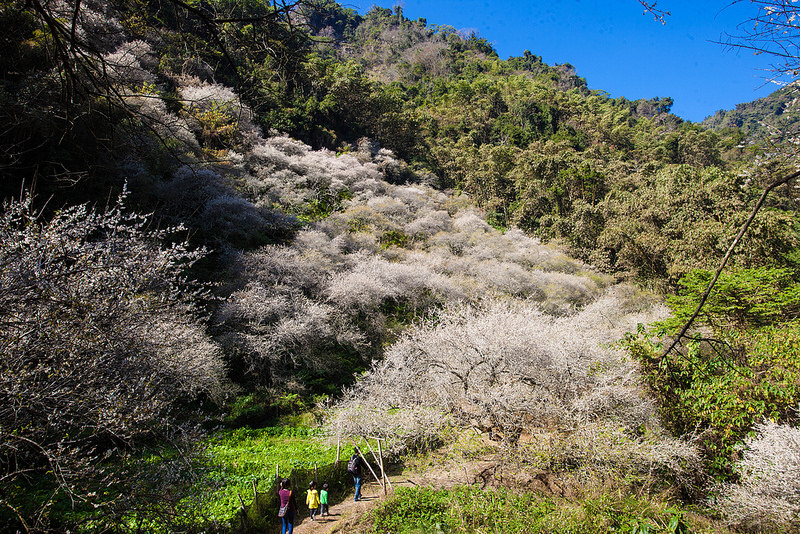 梅樹間彼此都有一定的距離,來的這天天氣超好,藍天綠地白梅拍起來超漂亮