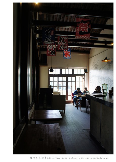 樓上的空間一樣是分為兩部分,老房子裡用餐格外的有懷舊氛圍,斗笠燈罩,感覺上是揉合了台日不同的風格,卻又意外地搭。