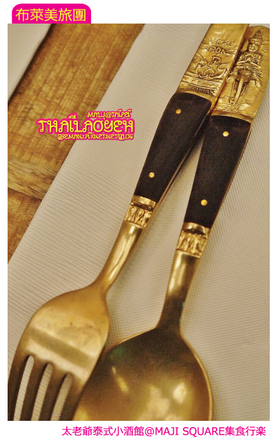 △太老爺的餐具和Malu在網路上看到曼谷那間似乎是一樣的,金色的湯匙叉子(記得好像沒有筷子這種東西@_@),仔細一看,叉匙上方還有細緻的圖案,相當有泰國風味