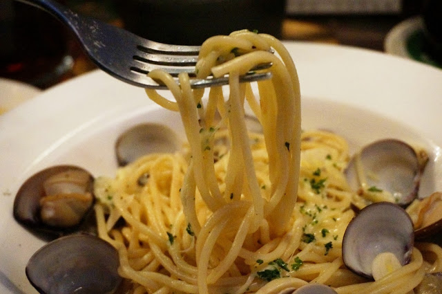 麵條部份口感也相當得宜配上白酒、蒜二者的提味和醬汁的融合,也相當的好吃