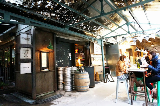 店外座位除外搭傘棚與窗旁外的坐位,在走道路也有擺設,而店外特色酒桶、酒瓶外觀也是賣點特色