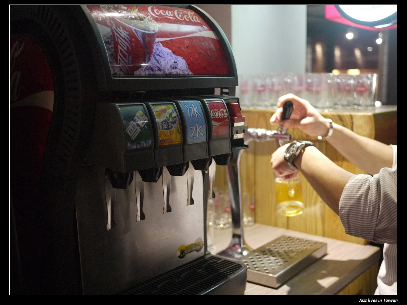 冰淇淋櫃旁的則是飲料吧, 有生啤酒機唷! 燒烤就是要配啤酒才有爽快度啦~ 只可惜, 今晚我開車... T^T