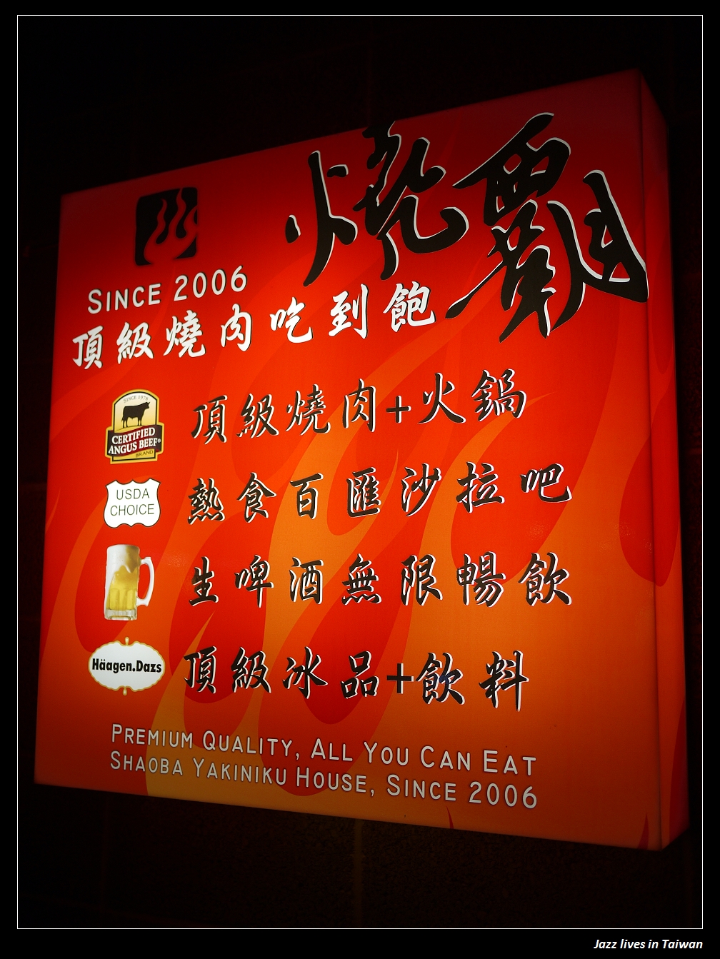 燒霸位於東區巷內, 標榜頂級燒肉吃到飽, 有燒肉, 火鍋, 熱食, 沙拉, 生啤, 哈跟打斯和飲料,