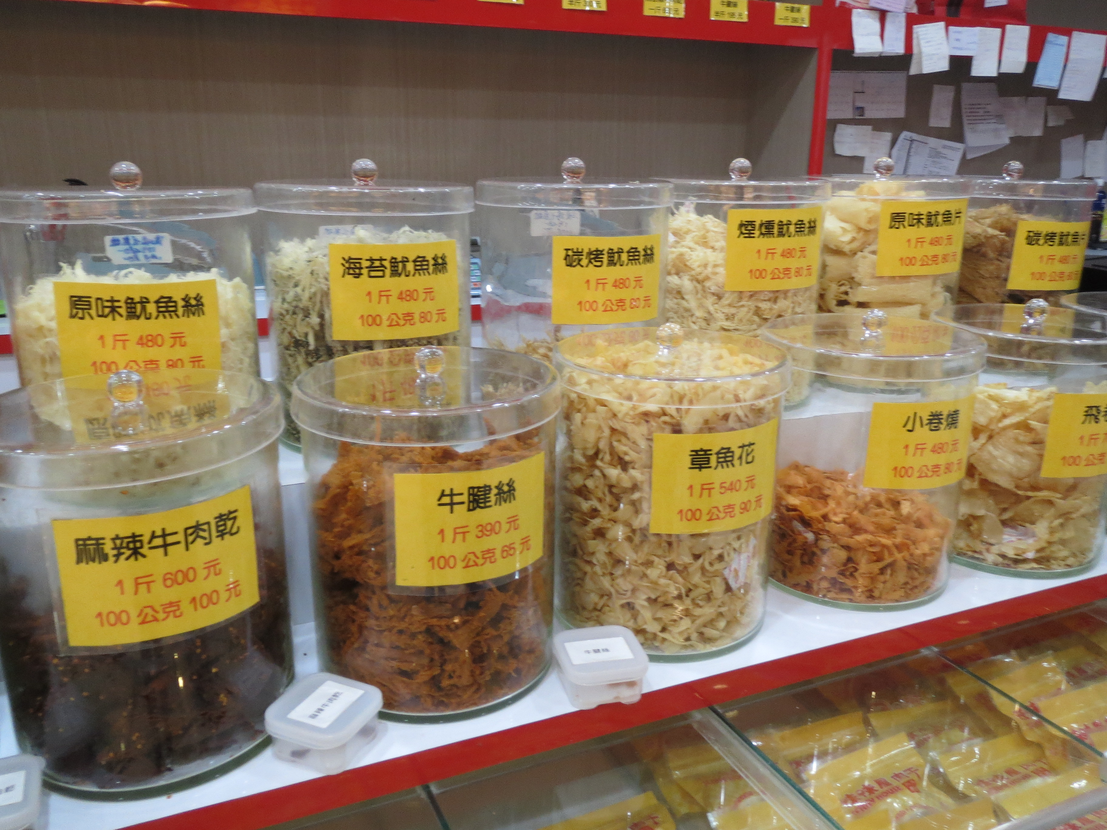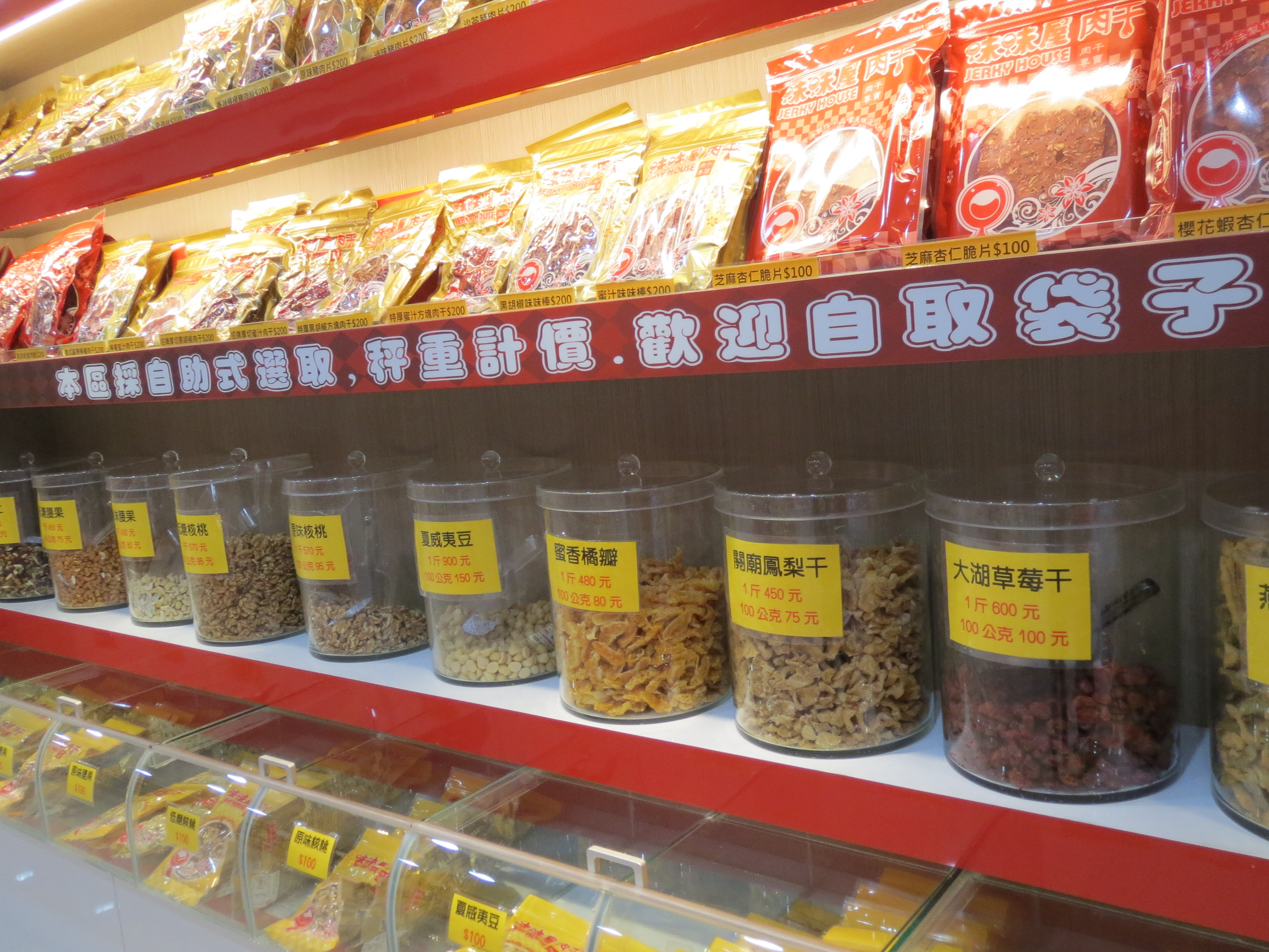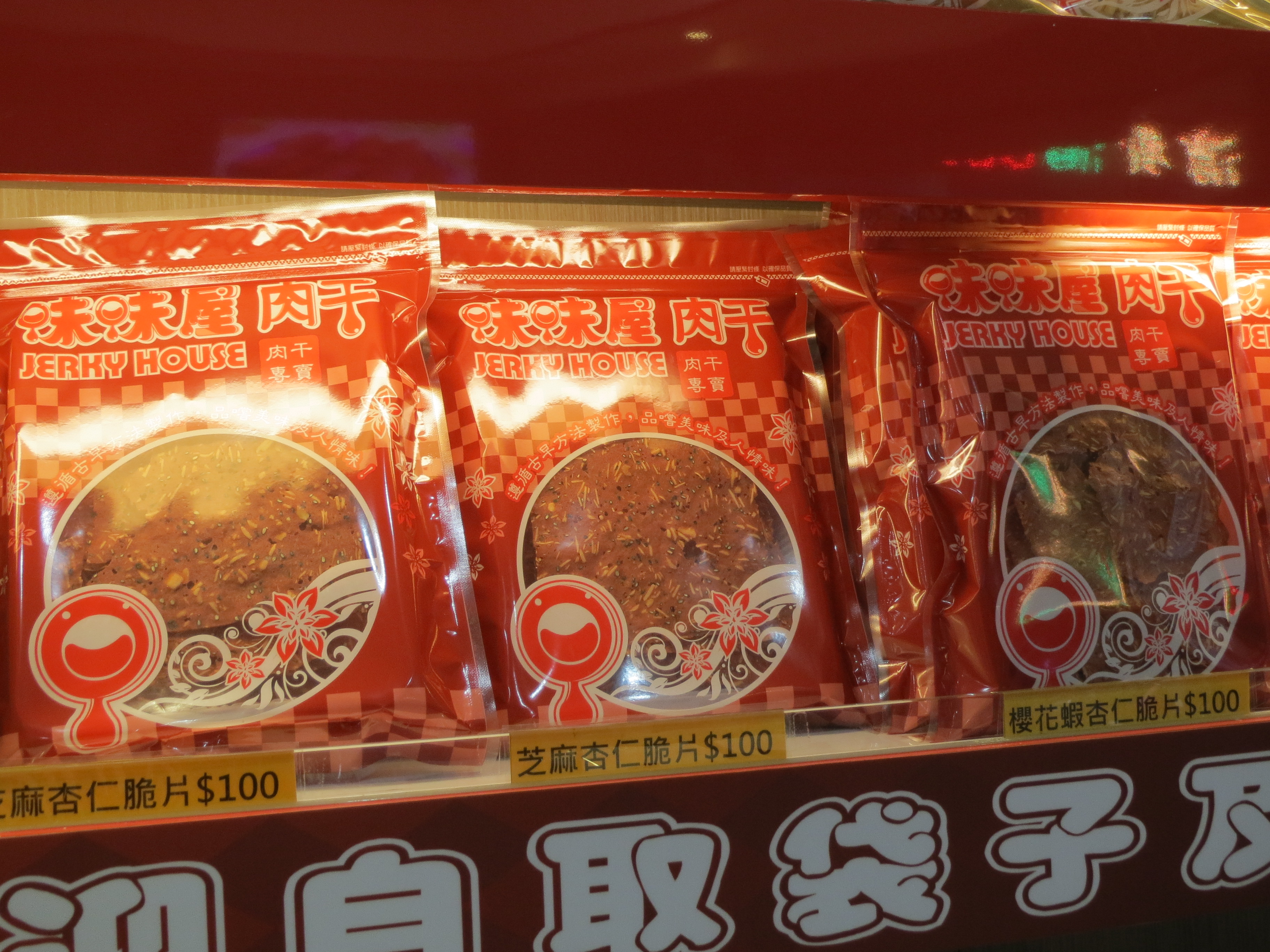 店家供應的商品共分為爆漿肉干系列、海味系列、果乾系列和肉紙系列等等,選擇之多令人目不暇給。另外因應一些消費者的需求,也有一些素肉乾和其他的糖果餅乾,可以讓客人選購。除了自由拿袋子論斤論兩計算費用之外,也有現成的包裝能夠讓趕時間的人直接提著走,而且上頭都有很清楚的價格標示。