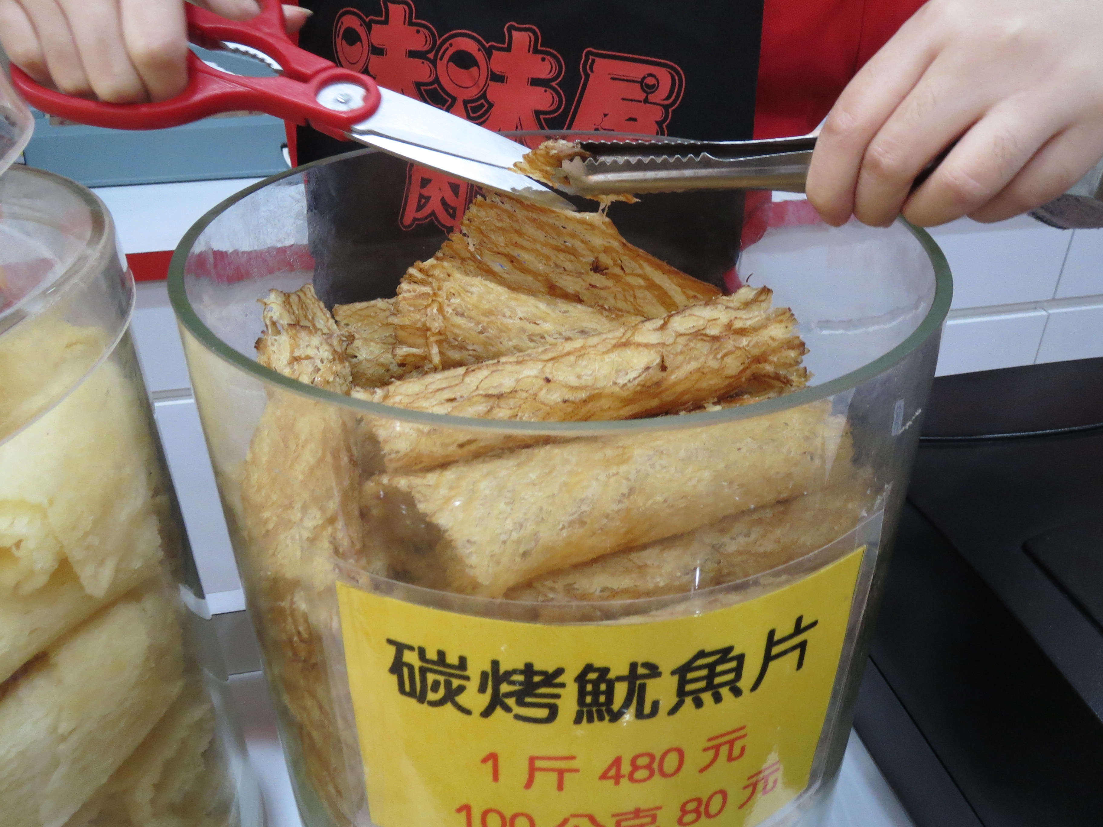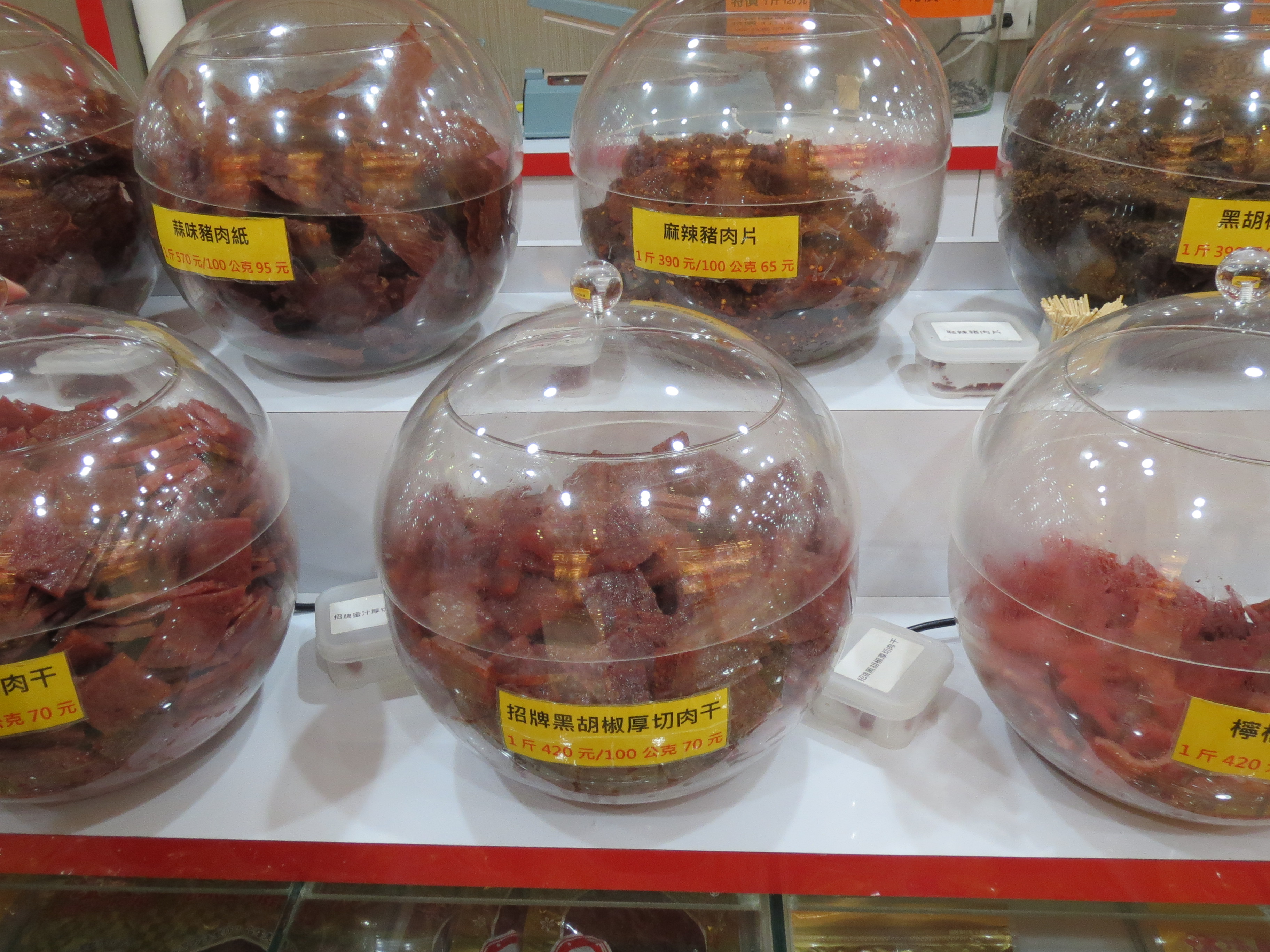 第二區是肉紙系列,味味屋共有兩種肉紙,一種是放在爆漿肉干旁邊的咬勁豬肉紙,另一種是脆片肉紙。店家儘管基於怕脆片肉紙很容易碰碎,影響到拍照的美觀度的考慮,而沒有讓我們體驗脆片肉紙,但還是很好心地讓特地來一趟的評友們試吃,個人覺得它吃起來的酥脆度跟餅乾有得比。