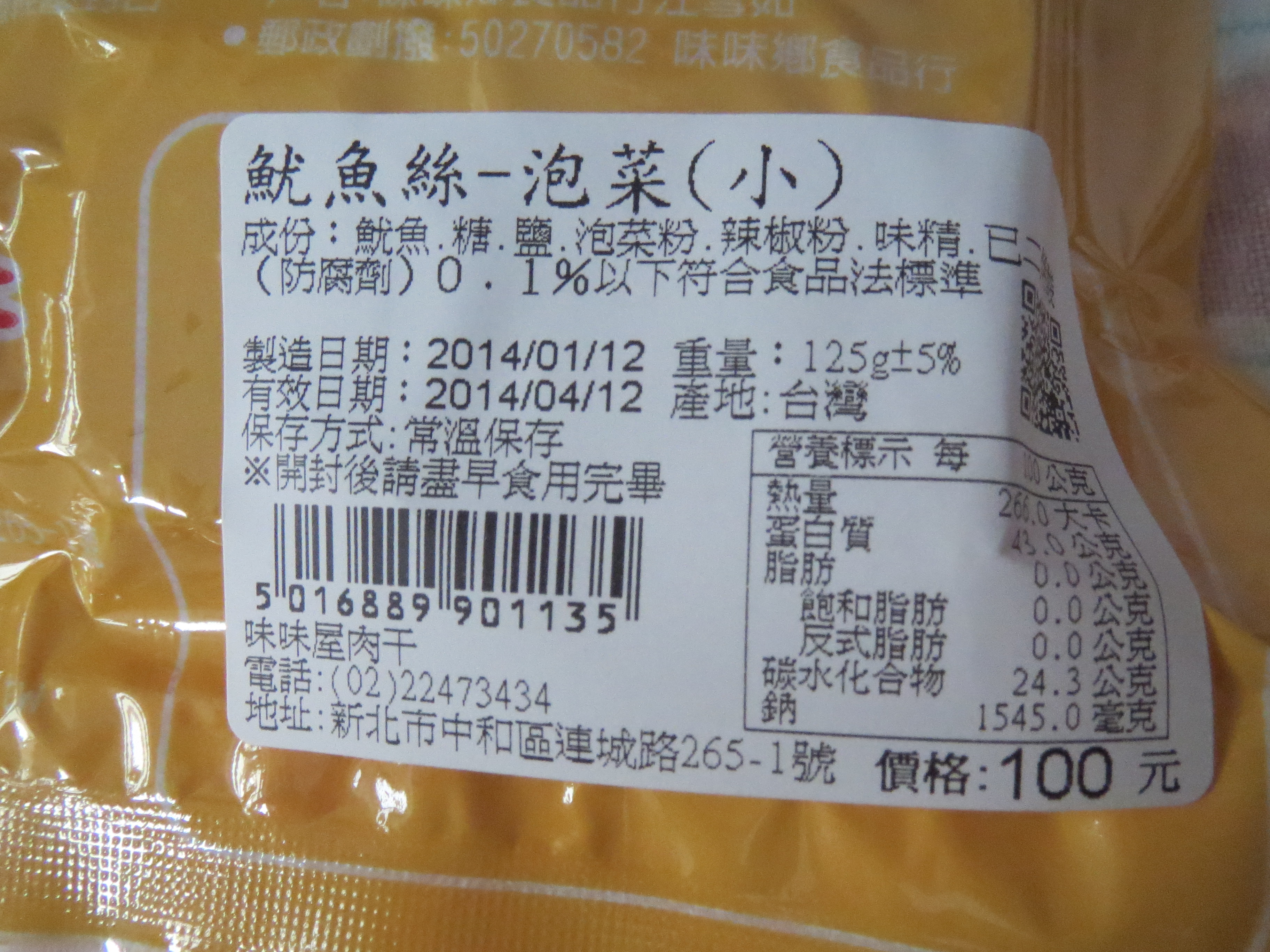 小包泡菜魷魚絲(約125公克,原價NT$100)