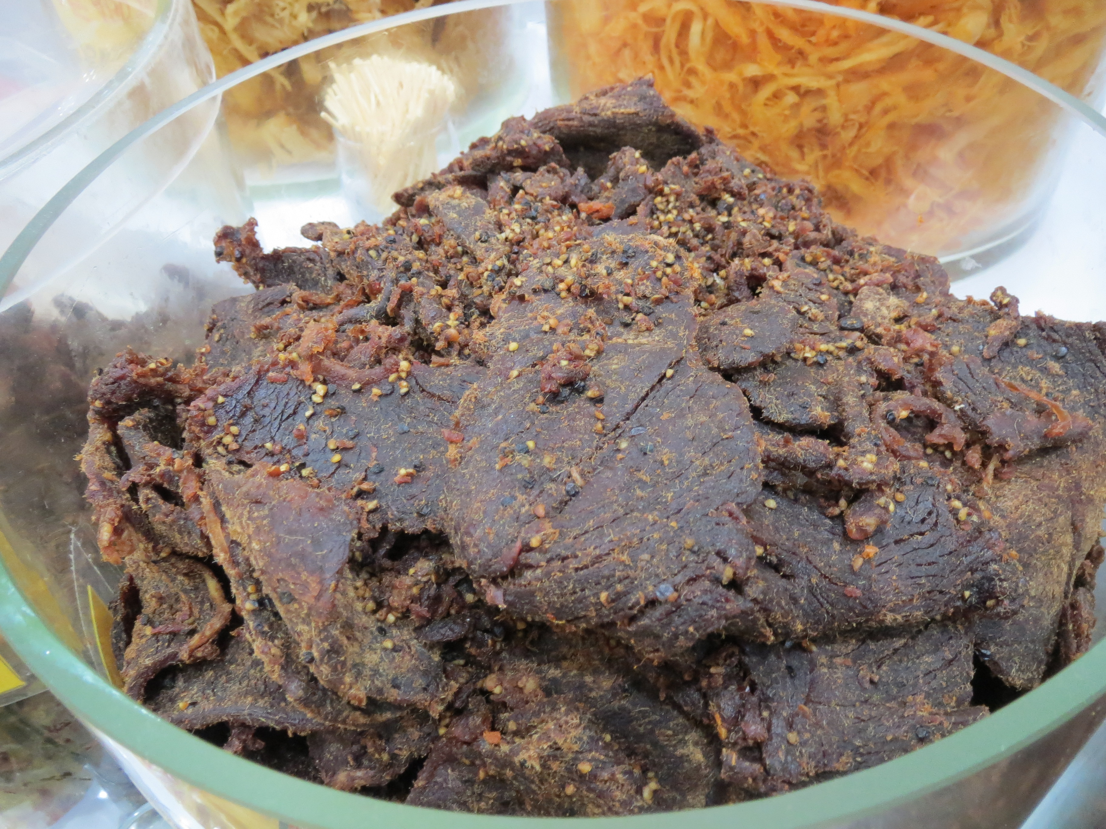 在試吃的過程中,我也親眼見識到店家的真材實料,這點從麻辣牛肉乾有很大顆的辣椒籽,和黑胡椒牛肉乾有很大顆的黑胡椒中都能略知一二。