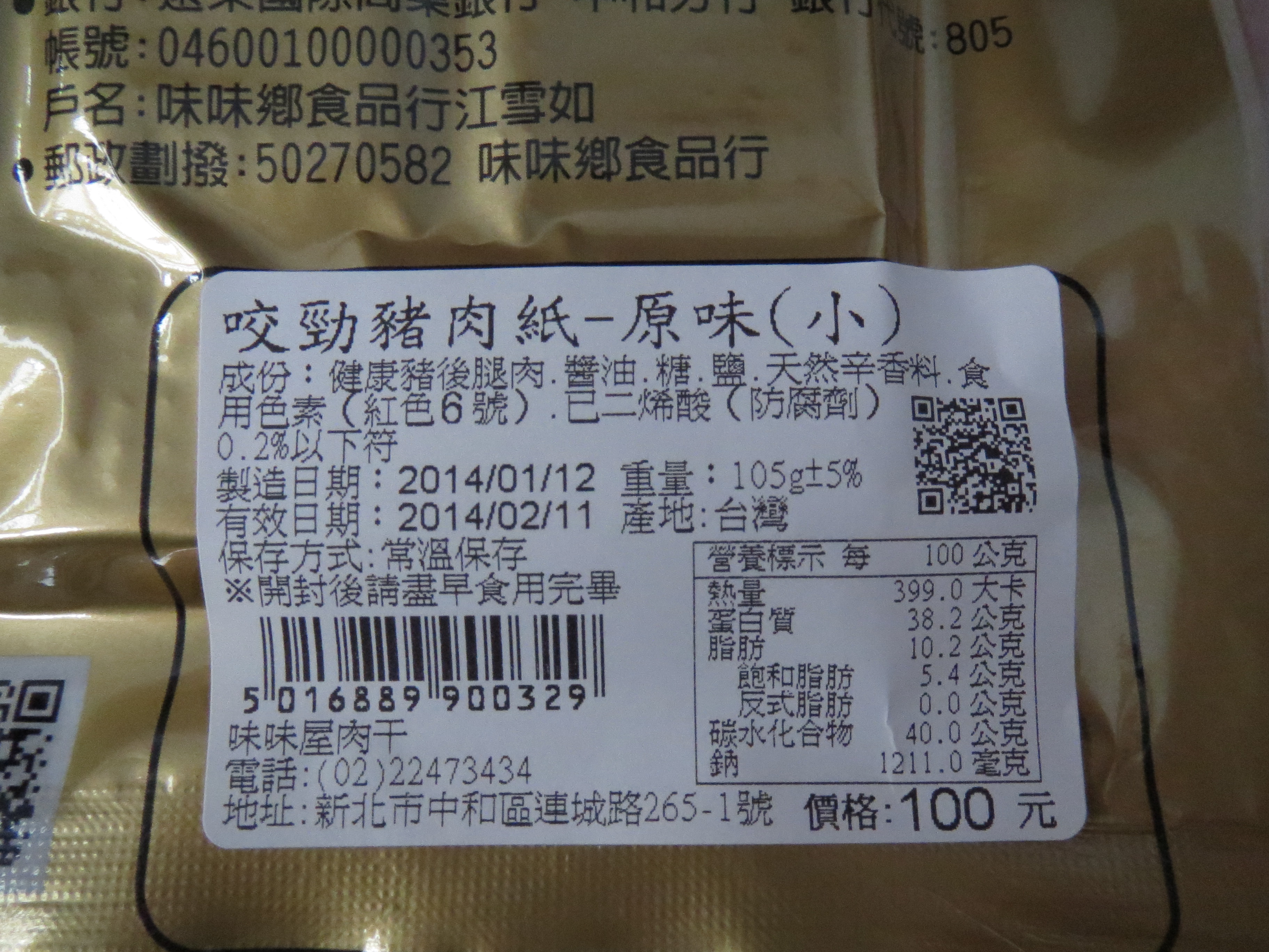 小包原味咬勁豬肉紙(約105公克,原價NT$100)