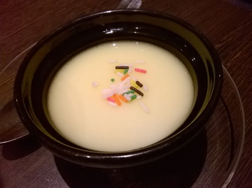 第二次上來的甜點還是布丁(我可以叫他香精果凍嗎XD),不過換了一個容器還加上草莓丁,視覺分數飆升!