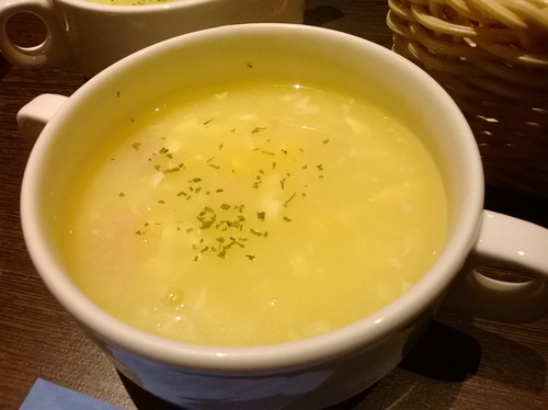 但我這碗卻只是單純的勾芡濃湯,沒有蛋花、更沒有奶油香,所幸還有玉米和不少軟火腿"絲"撐腰,品質蠻普通的((失落......