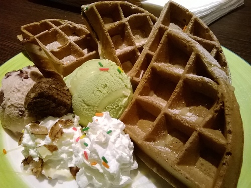 麻糬鬆餅的初體驗,還算不差啦~不用沾冰淇淋,酥酥脆脆的再加上麻薯黏黏的豐富層次,亂好吃的:P