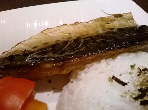 側面看過去有沒有覺得他很厚啊~沒想到烤得硬脆的表皮之下卻是乾硬的魚肉,而且飯也蠻乾的