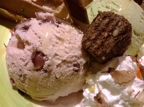 給了紅豆、抹茶冰淇淋各一顆,不過這種品質的冰淇淋竟然出現在這裡......