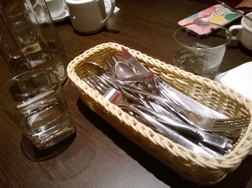 刀、叉、大小湯匙像這樣全部丟在一起感覺不太好,要拿的時候還會擔心刺到手@@