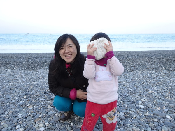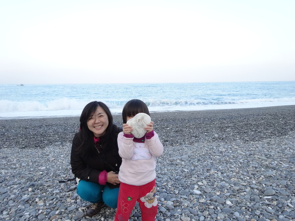 在海邊,大家安靜的坐在不同的角落,連虎甜心也可以在鵝卵砂石中,找到自己的一片天地。